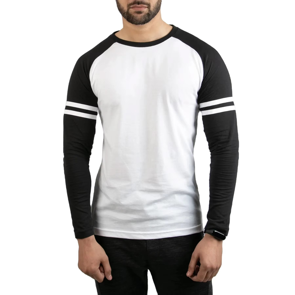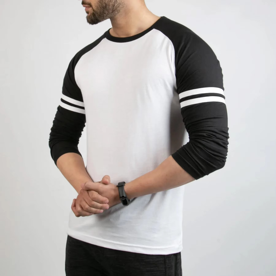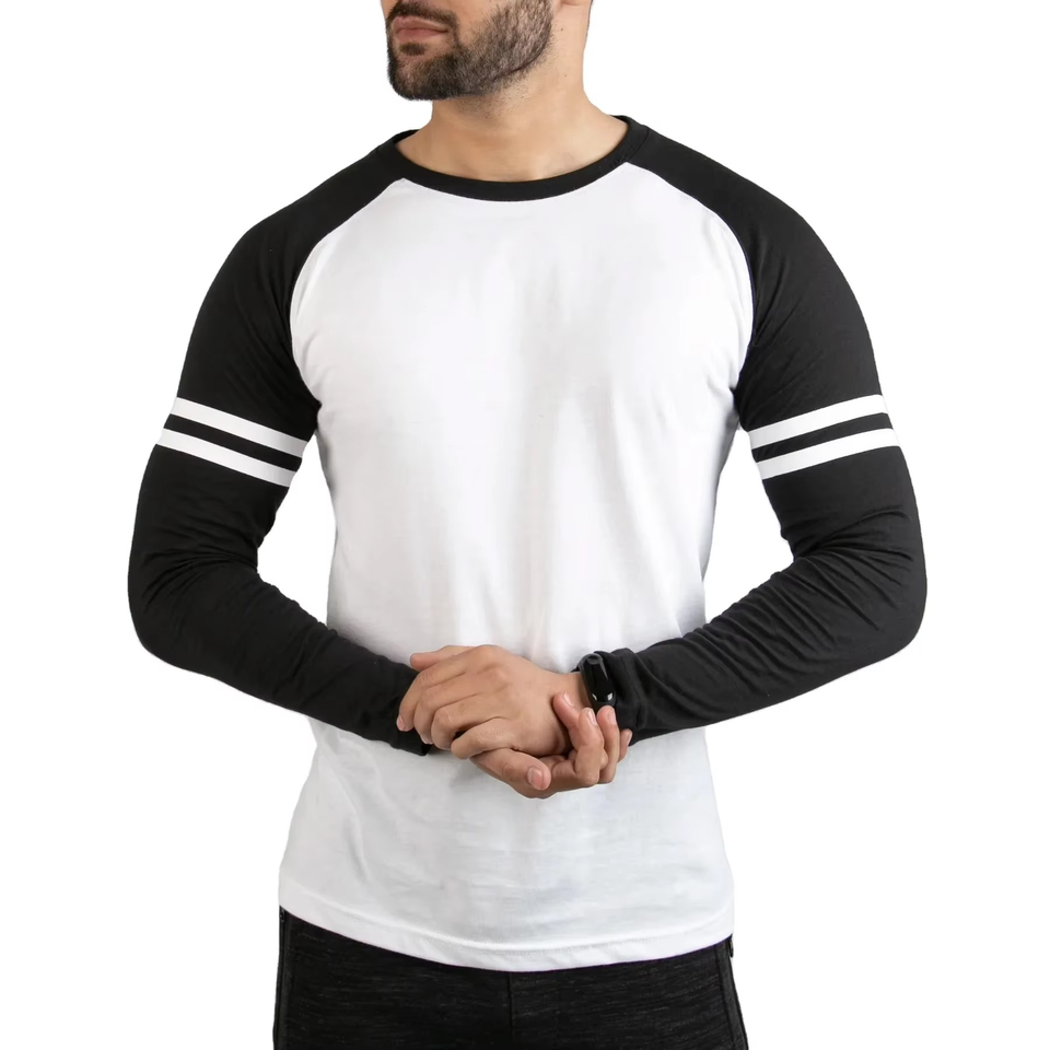 T-shirt de sport pour hommes à col rond et manches longues, 100 % coton tricoté, séchage rapide, uni, doux pour la peau, pour la gym - Vente en gros