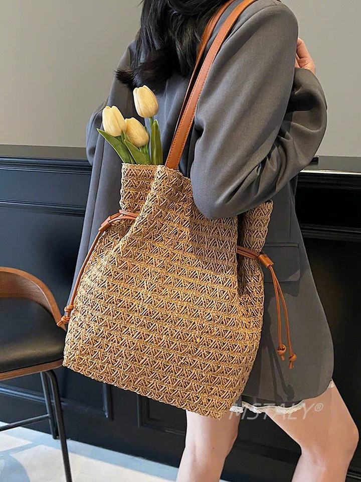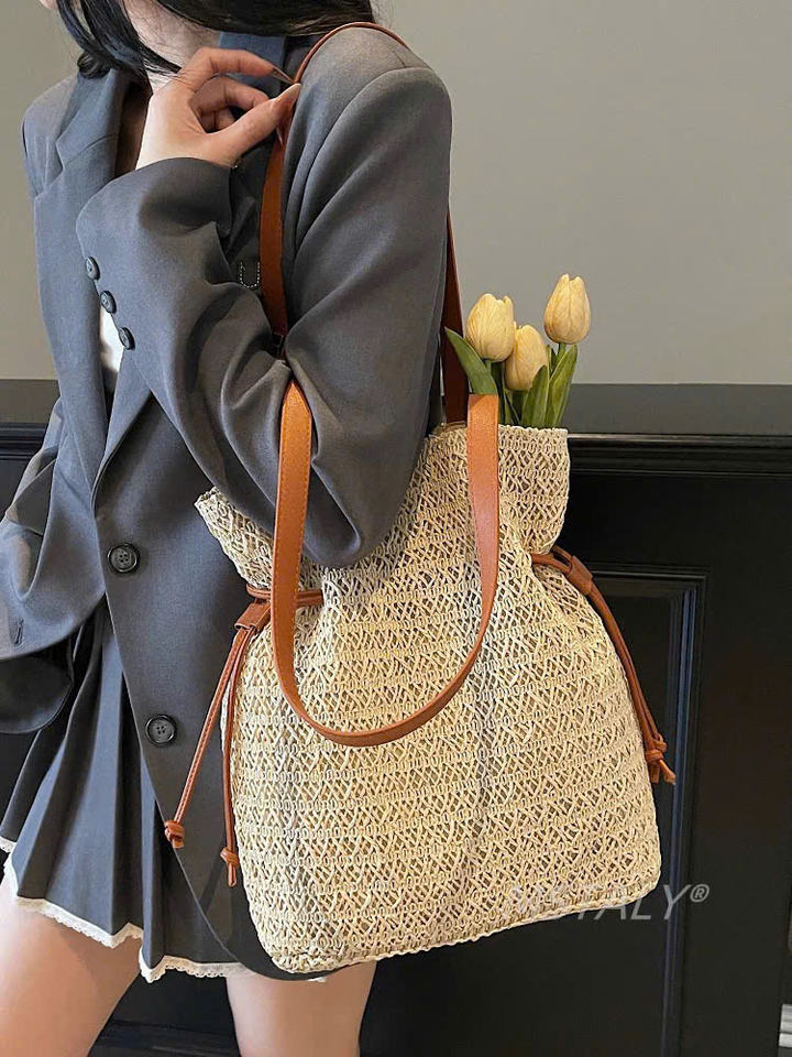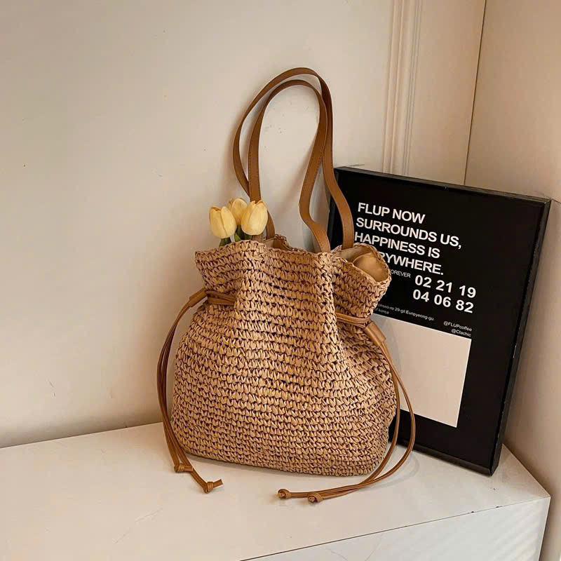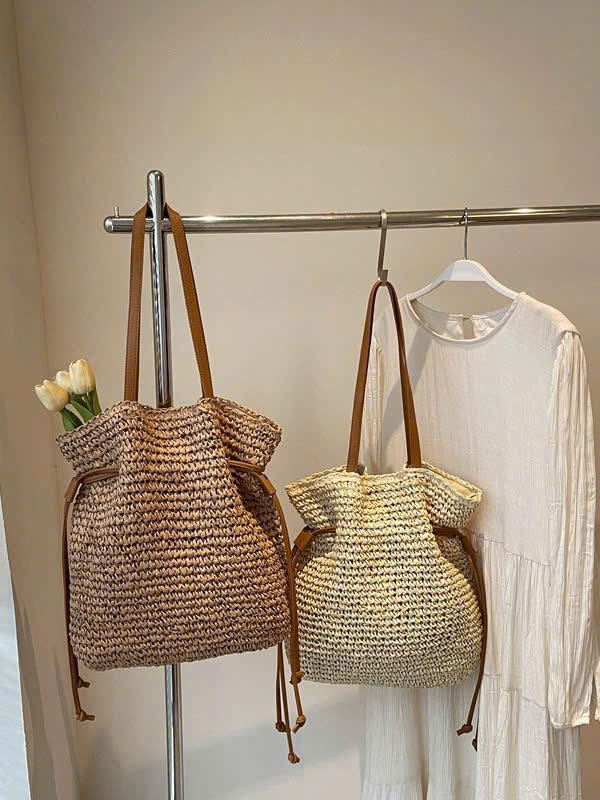 Sac à main en raphia de papier, nouveau style, prix de gros le plus bas, pour femme, été 2026, avec sac en cuir