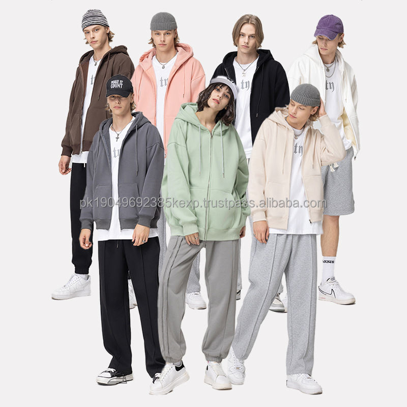 Wholesales Custom Zip Collar 430g Cotton+Polyester Fleece Lined Hoodies Unisex Full Zip Up Hoodies