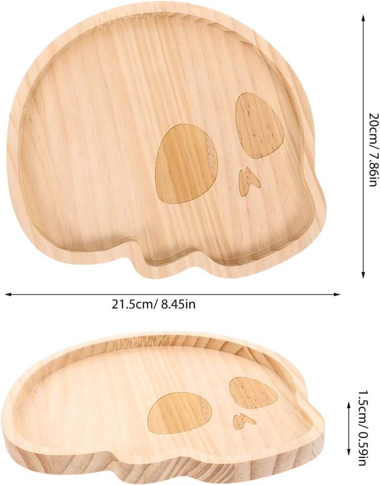 Wood serving tray with skull head shape for HalloweenProduct Name