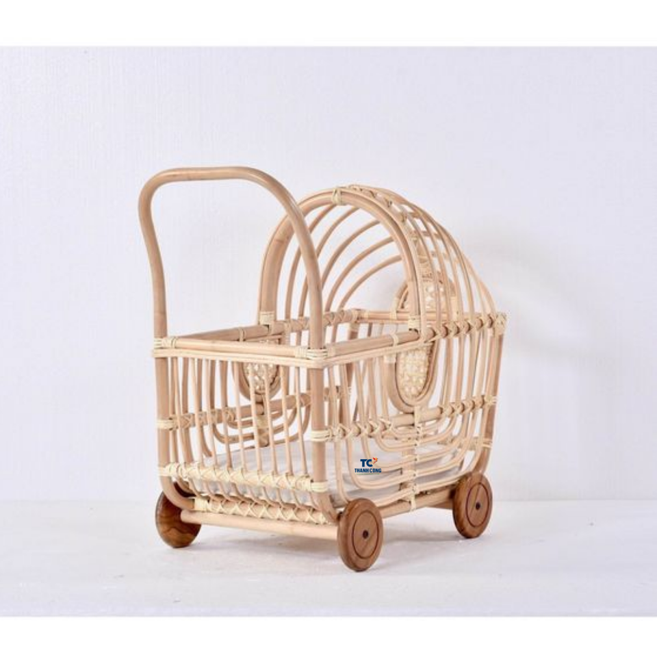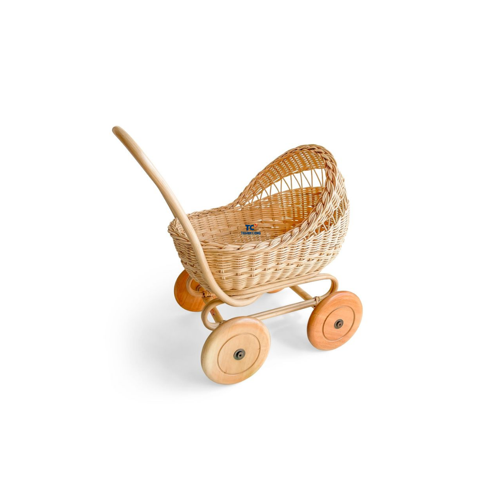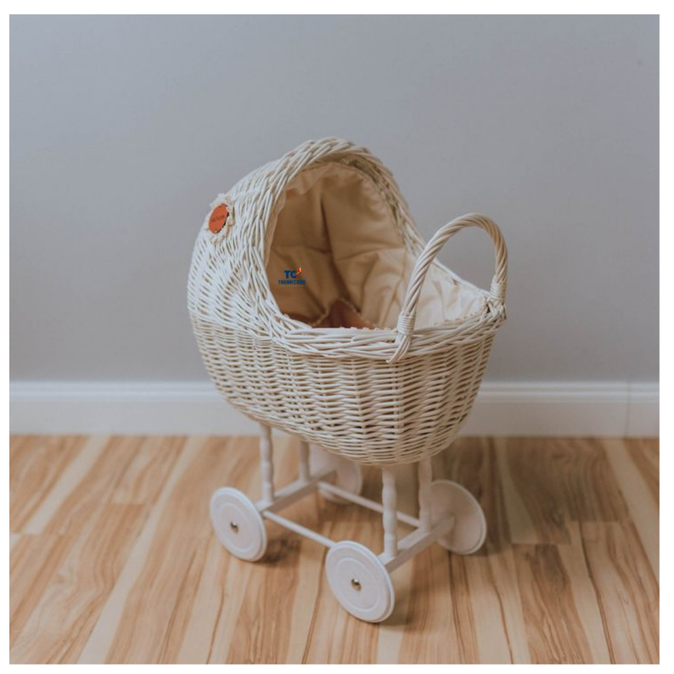 Vente en gros de chariot en rotin naturel pour décoration de la maison pour poussette en rotin pour jouet bébé poupée du Vietnam