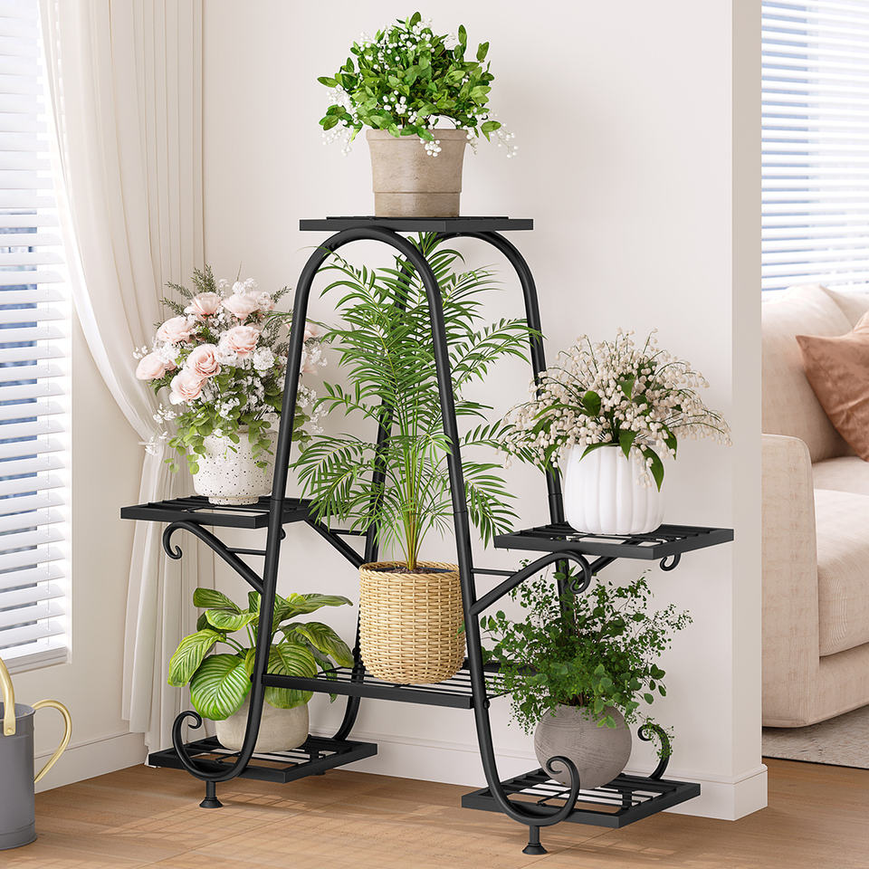 Wholesales Living Room Corner Display Rack 5-Tier Indoor Metal Flower Shelf Europe-Style Plant Stand for Multiple Plants