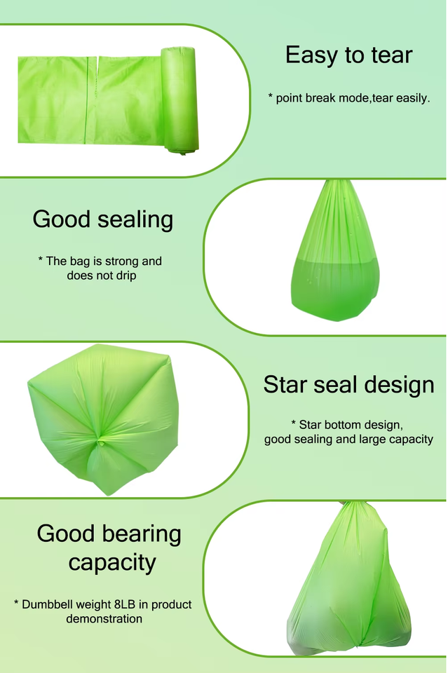 Vente en gros de sacs à ordures de cuisine jetables OXO écologiques en plastique sur rouleau rouleau coloré de PE de joint d'étoile pour l'épicerie