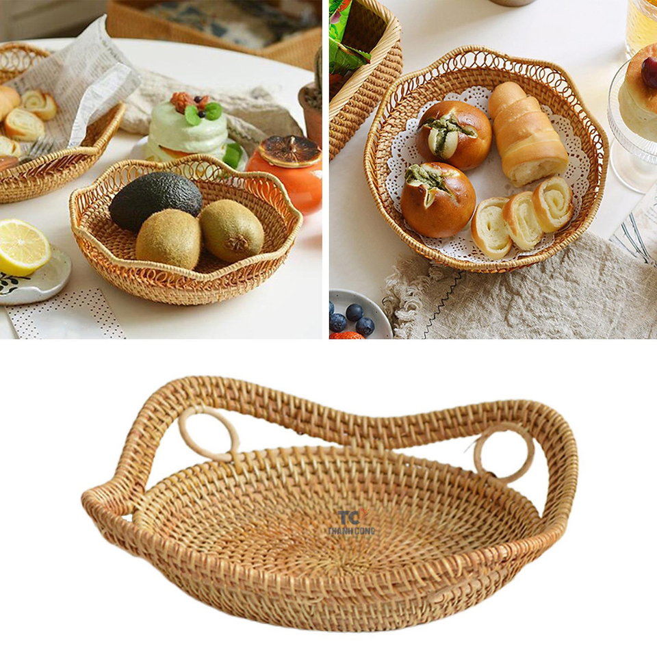 Vente en gros ensemble de plateaux en rotin présentoir plateau de service avec poignées décoration intérieure