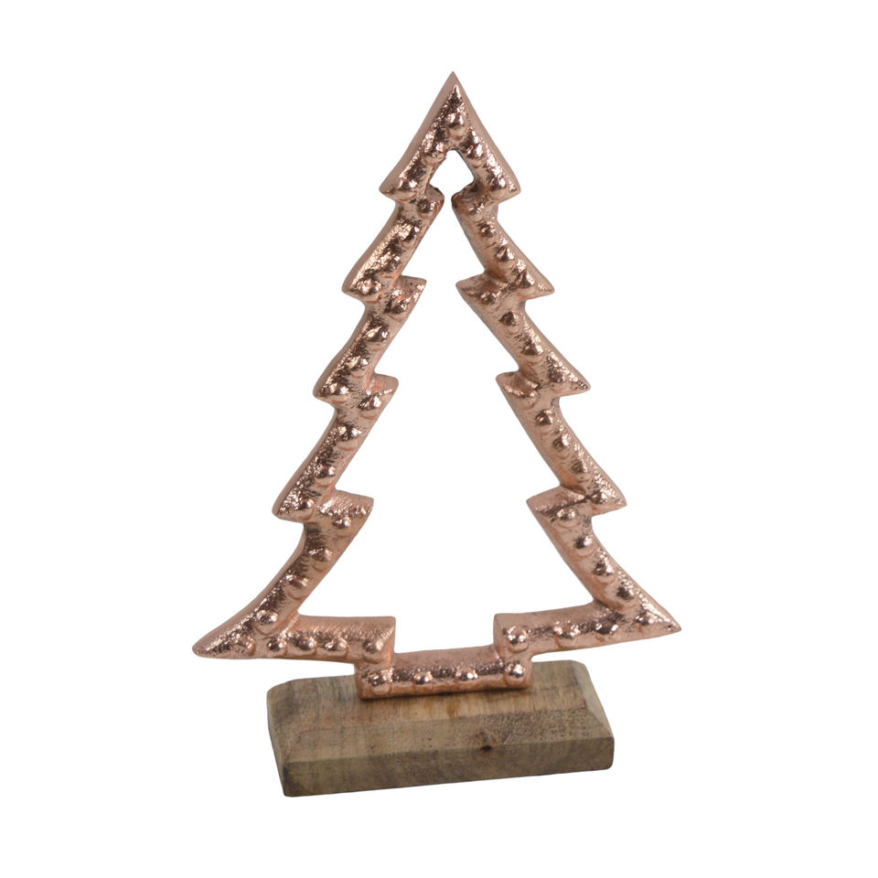 Vente en gros Joyeux Noël arbre plaqué cuivre avec base en bois brun pour ornement de fête pour Noël et décoration intérieure en métal