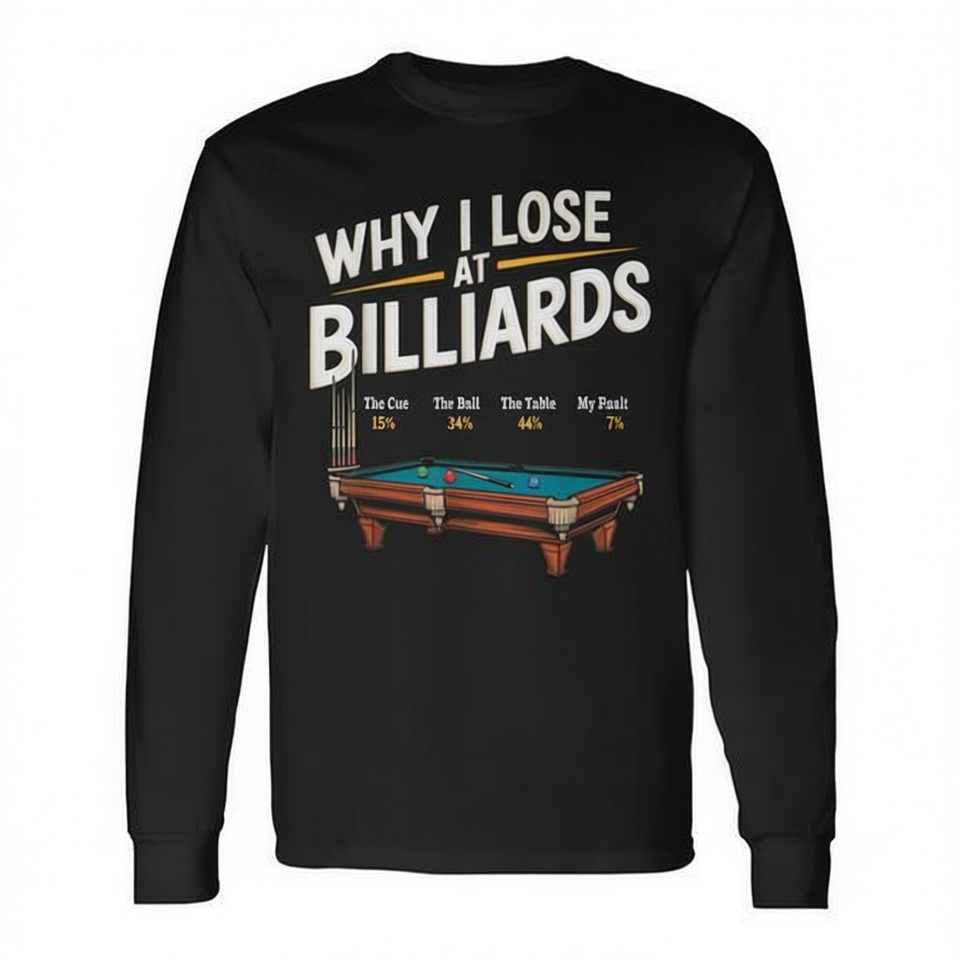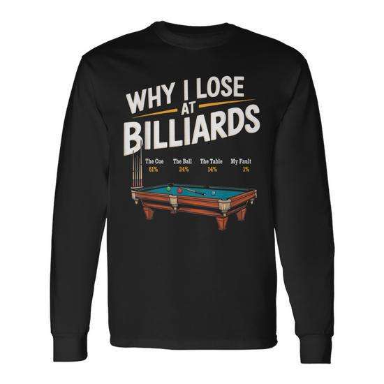 T-shirt à manches longues avec motif de joueur de billard/snooker : Pourquoi je perds au billard