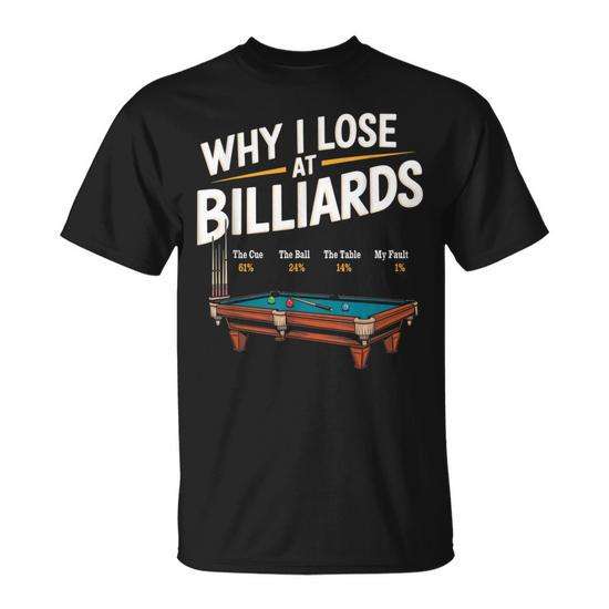 T-shirt pour hommes avec l'inscription « Why I Lose At Billiards », humoristique, sur le billard et le snooker
