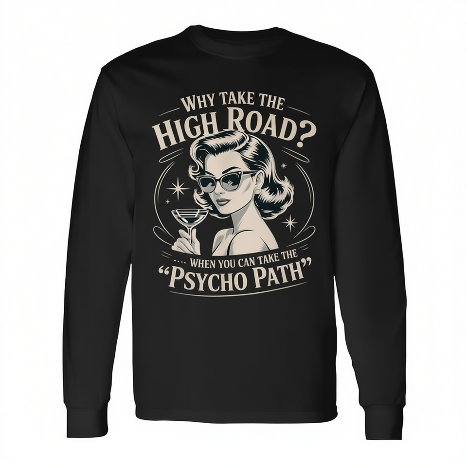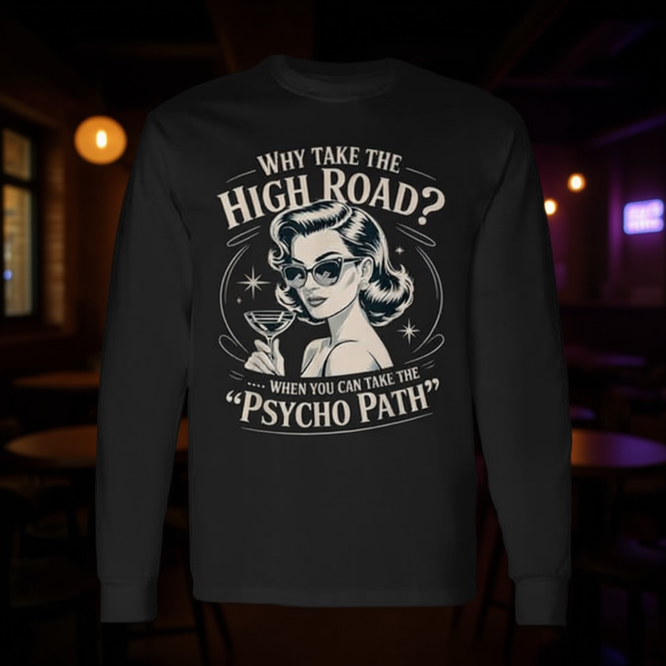 Pourquoi empreinte-t-on la voie la plus sûre quand on peut empreindre le chemin psychopathe ? T-shirt à manches longues