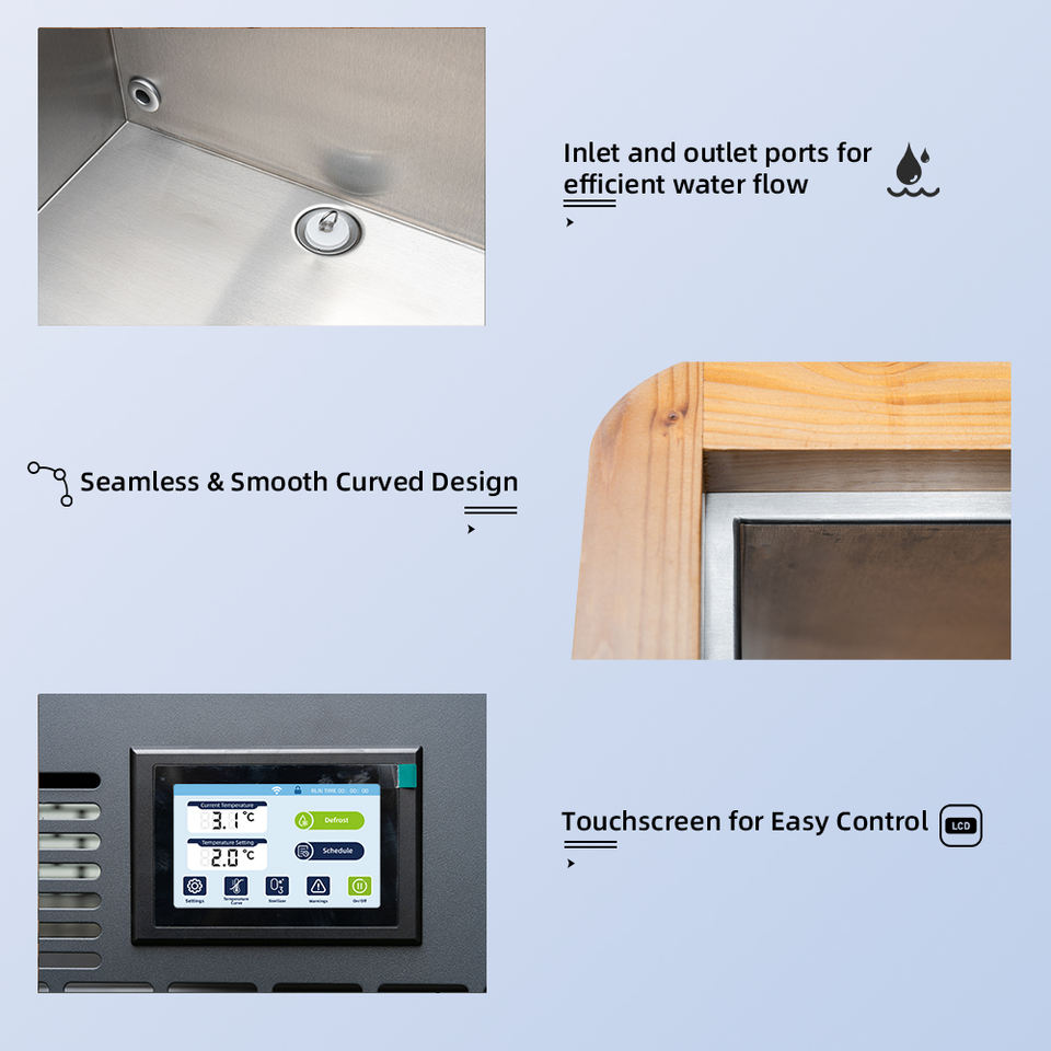 Baignoire à glace plongeante mobile en bois avec Wi-Fi Control Inox Ste Logo personnalisé Couleur Bain de glace portable Shiller 1 HP
