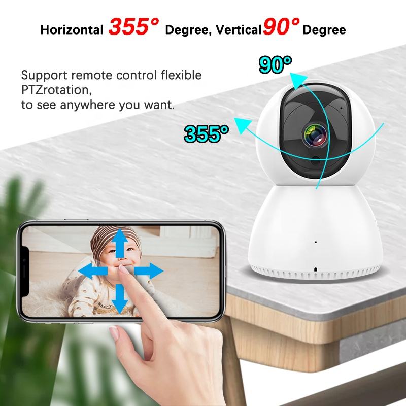 Caméra de surveillance intérieure Wi-Fi intelligente pour la maison, mini avec capteur CMOS, H.264, vision nocturne, audio bidirectionnel, étanche IP65, fonctionne avec Alexa et Google