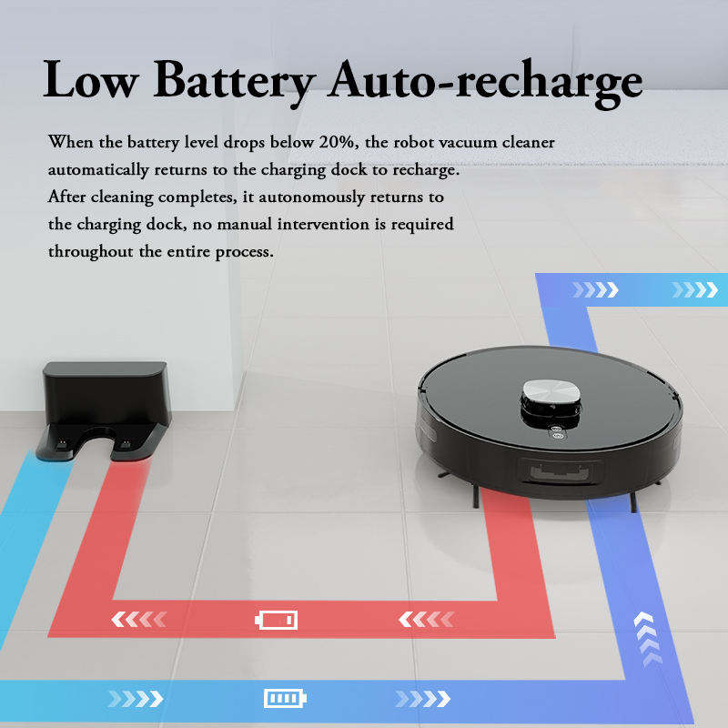 Aspirateur robot avec contrôle par application WiFi, cartographie laser, aspiration 3700Pa, nettoyage des bords, recharge automatique écologique, compatible avec la maison