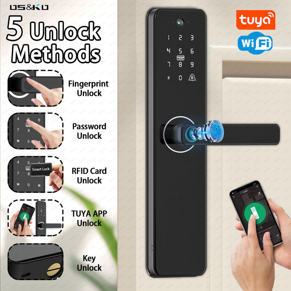 Débloquer façon:TUYA WIFI + caméra + écran + empreinte digitale + Code + carte d'identification RF + clé mécanique
