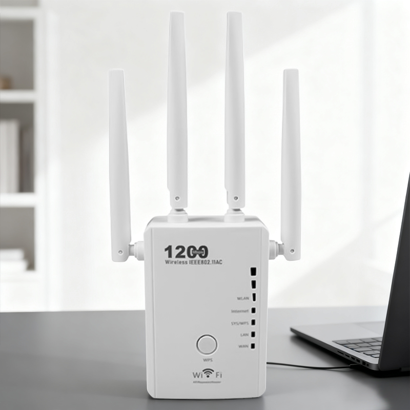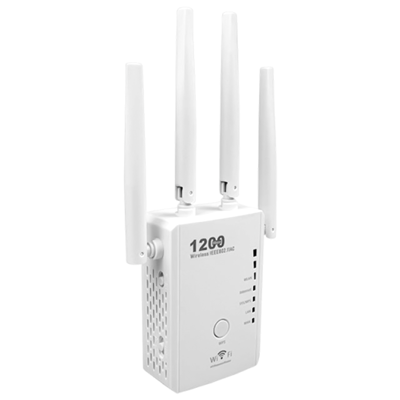 Répéteur WiFi avec extension de portée réseau longue distance 1200 Mbps, répéteur WiFi 5 sans fil avec deux ports Ethernet 100M