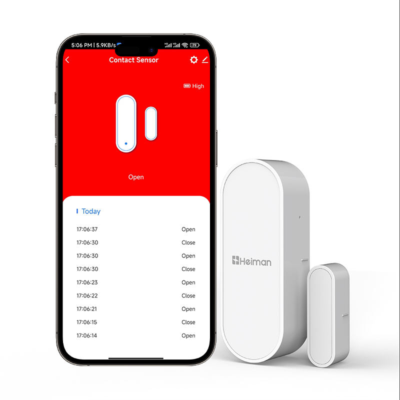 Détecteur de contact intelligent WiFi Heiman Tuya pour porte et fenêtre avec double interrupteur à lame, détection 15 mm, alerte via application pour la sécurité domestique