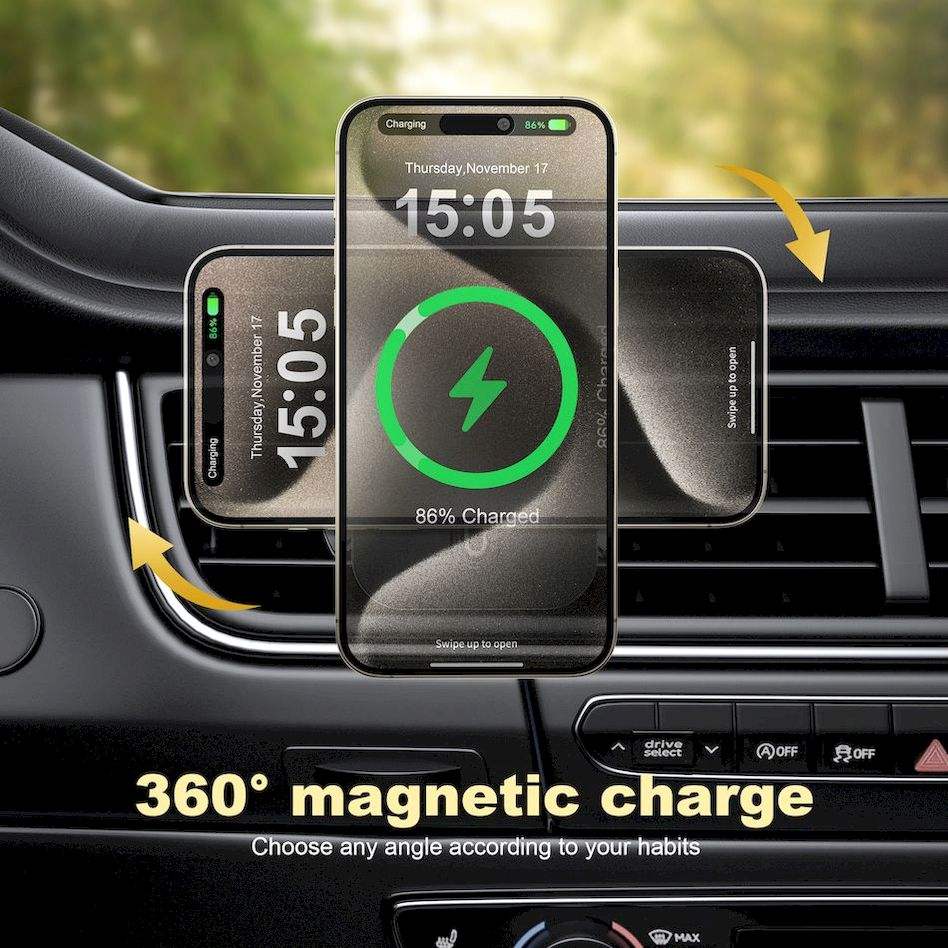 Chargeur de voiture sans fil WiWU Mini .0 15W/10W, charge rapide magnétique, rotation à 360°, support de téléphone, port Type-C pour iPhone 12-15