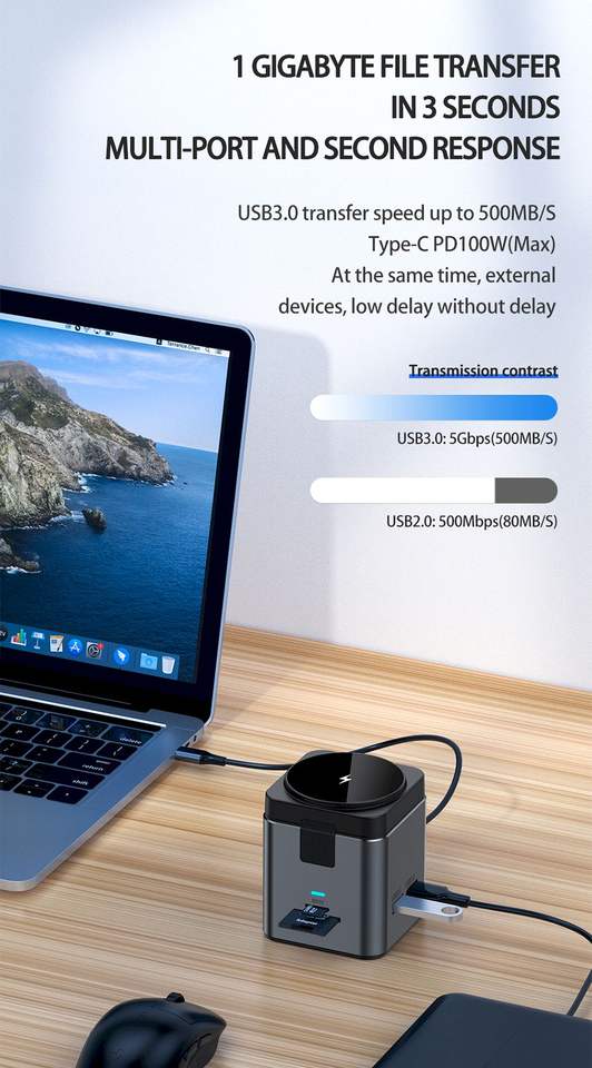 Function:15W Magnetic Wireless Charging+PD 100W Charging+TF SD Card Slot