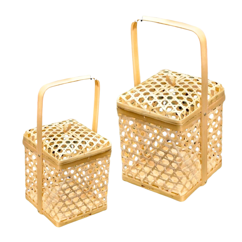 PANIER CADEAU EN BAMBOU en osier avec poignée Mariages Festivals Décoration intérieure Panier à fleurs Écologique et élégant pour emballage cadeau
