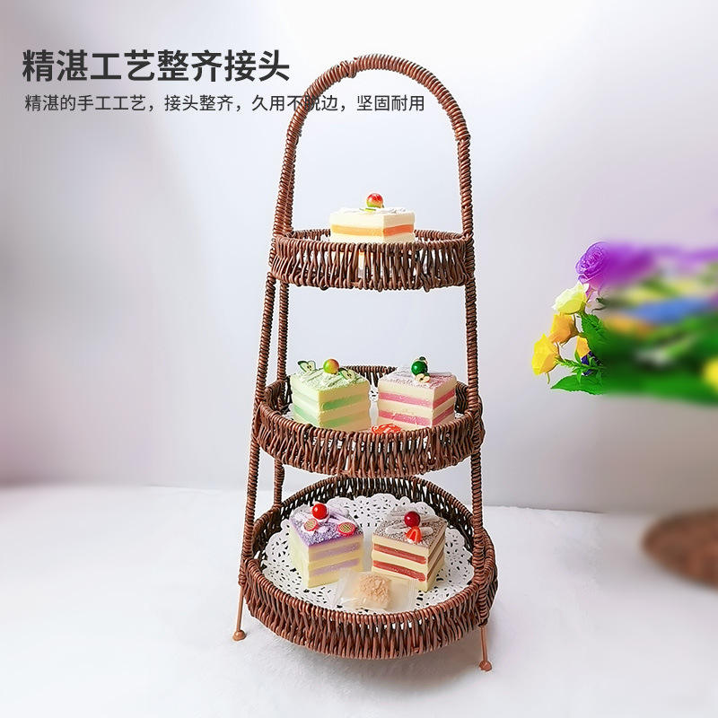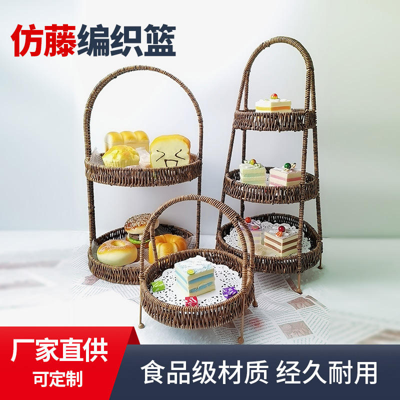Wicker Basket Round With Handle For Kitchen Storage Fruit Bread Snacks Standing Type Yellow Sichuan Pepper Color