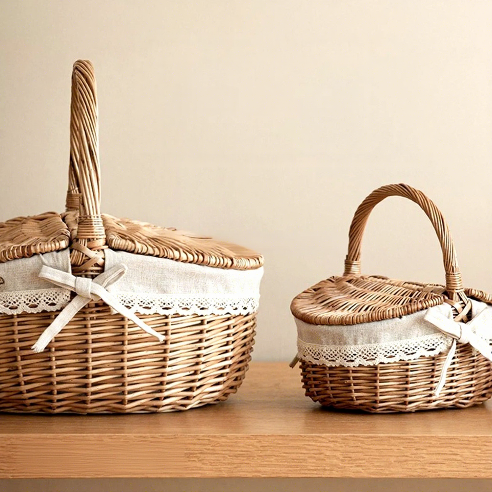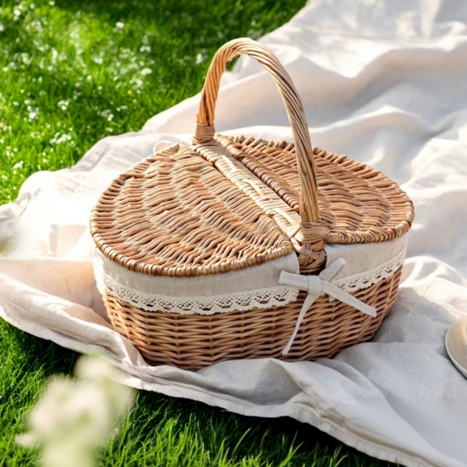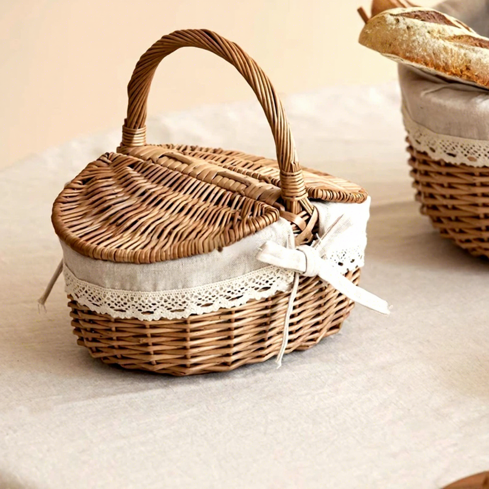 Panier de pique-nique en osier, rotin et bambou, tressé, pour le transport de légumes et fruits, idéal pour les festivals, le rangement et la conservation du pain lors des pique-niques