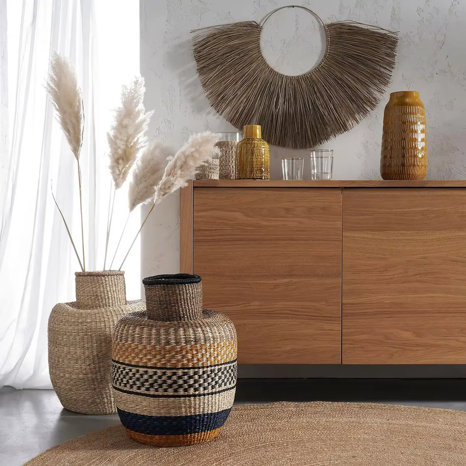 Size: D16,5 x W16,5 x H21,7 inch:Wicker Seagrass Vase Handwoven Natural