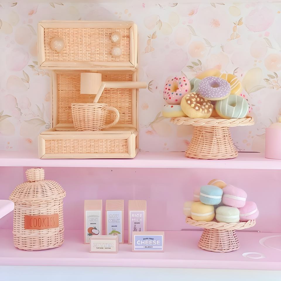 rattan kid toys coffee machine