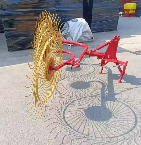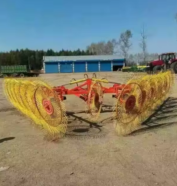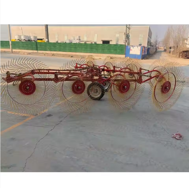 Râteau à doigts large de 5,5 m pour tracteur, couvre une grande surface efficacement, optimise le séchage du foin et des cultures fourragères