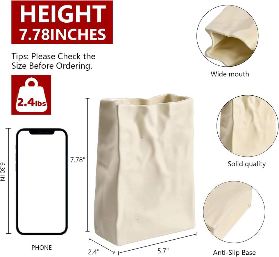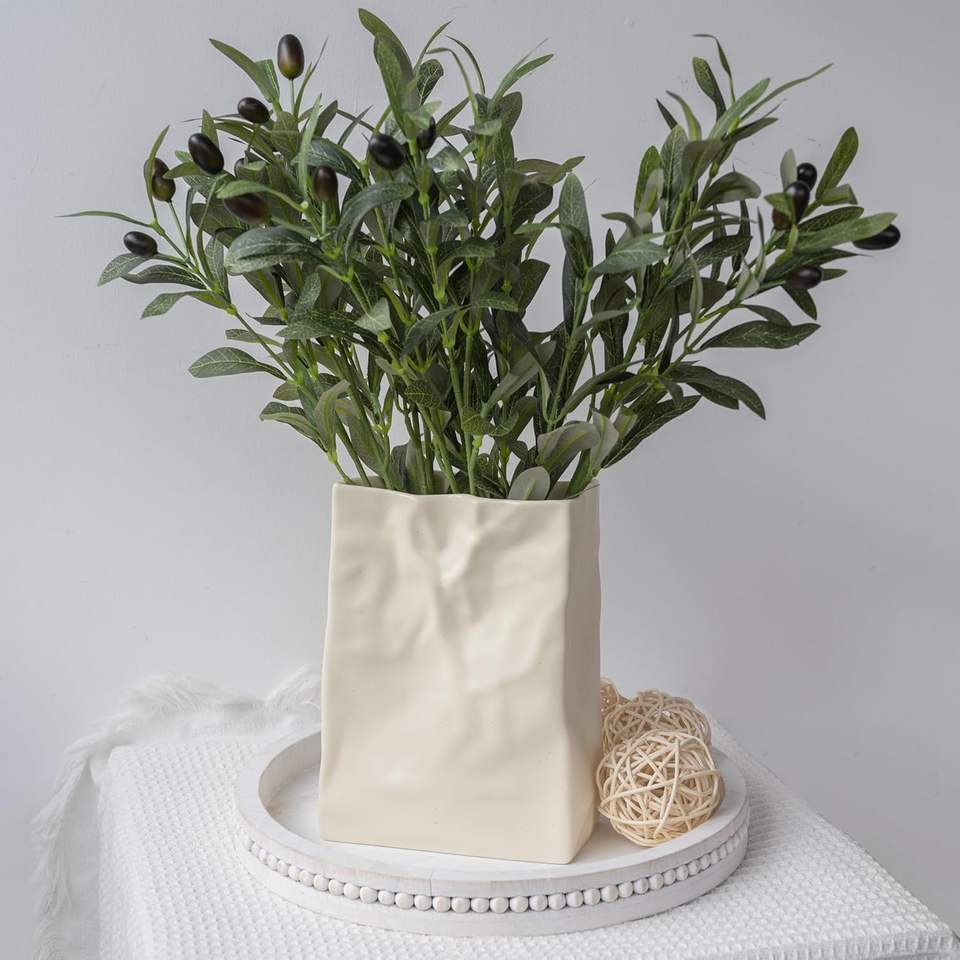 Large vase à fleurs en céramique blanc crème Boho Wabi-Sabi Home Decor Étagère esthétique Style minimaliste décoratif pour Pâques
