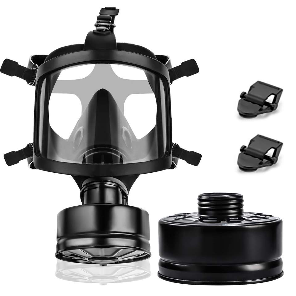 Masque à gaz à large champ de vision Filtre auto-amorçant noir monté sur la tête Fire Volcano Masque complet anti-fumée et anti-poussière Anti-gaz