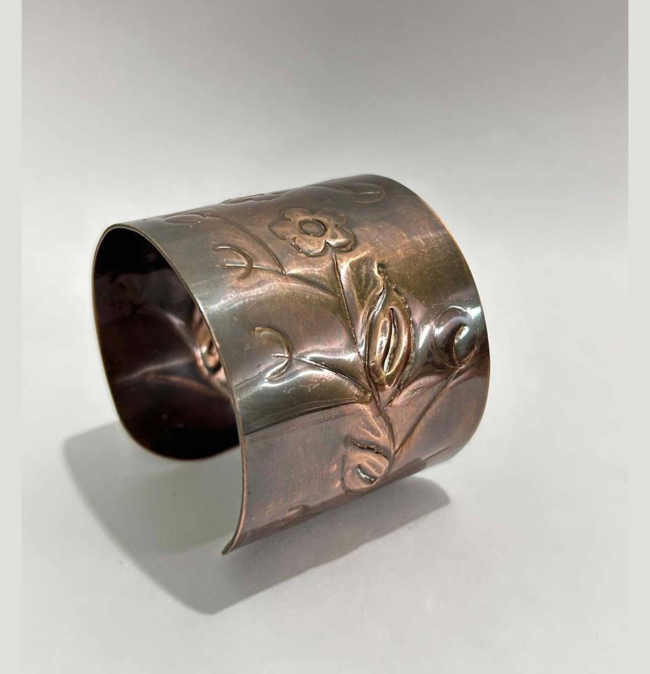 Large fleur gravé Antique personnalisé Bracelet manchette libellé personnalisé grand cadeau pour anniversaire arthrite cuivre Bracelet
