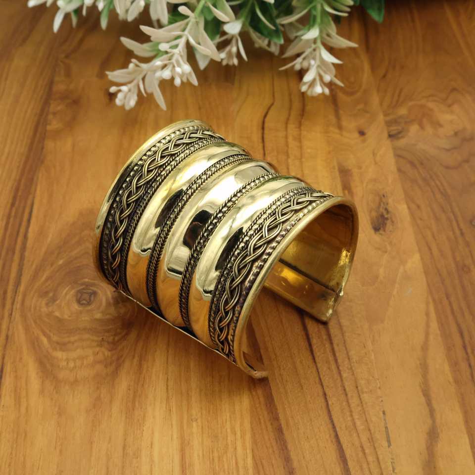 Large bracelet de manchette doré | Bracelet de déclaration Boho | Bracelet réglable en laiton | Bijoux de style vintage | Cadeau pour elle