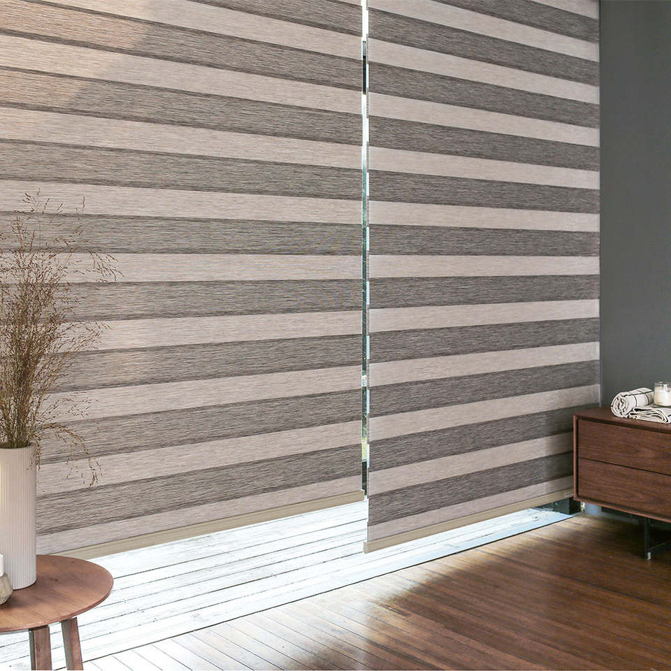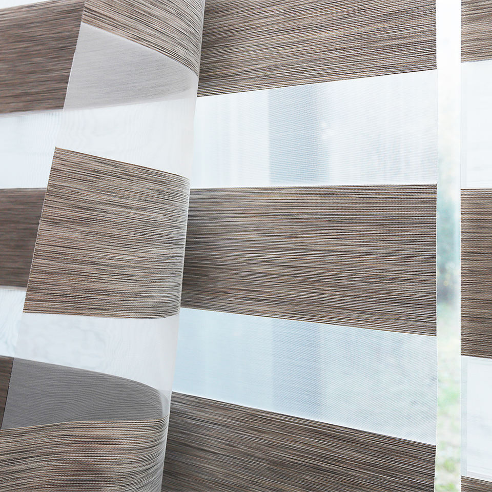 Stores zébrés coréens larges, sur mesure, jour et nuit, motorisés, automatiques, filtrant la lumière, double couche, modernes, verticaux