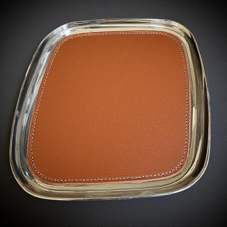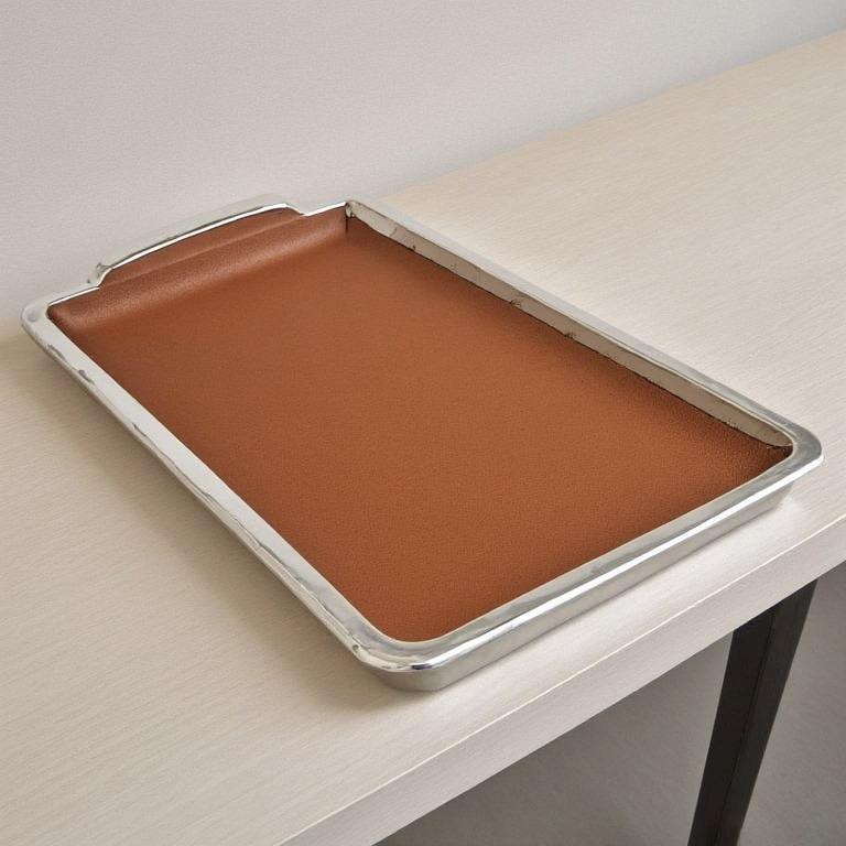 Plateau en cuir large avec bordures cousues et surface polie conçu pour les paramètres élégants de la maison et des présentations d'hôtel