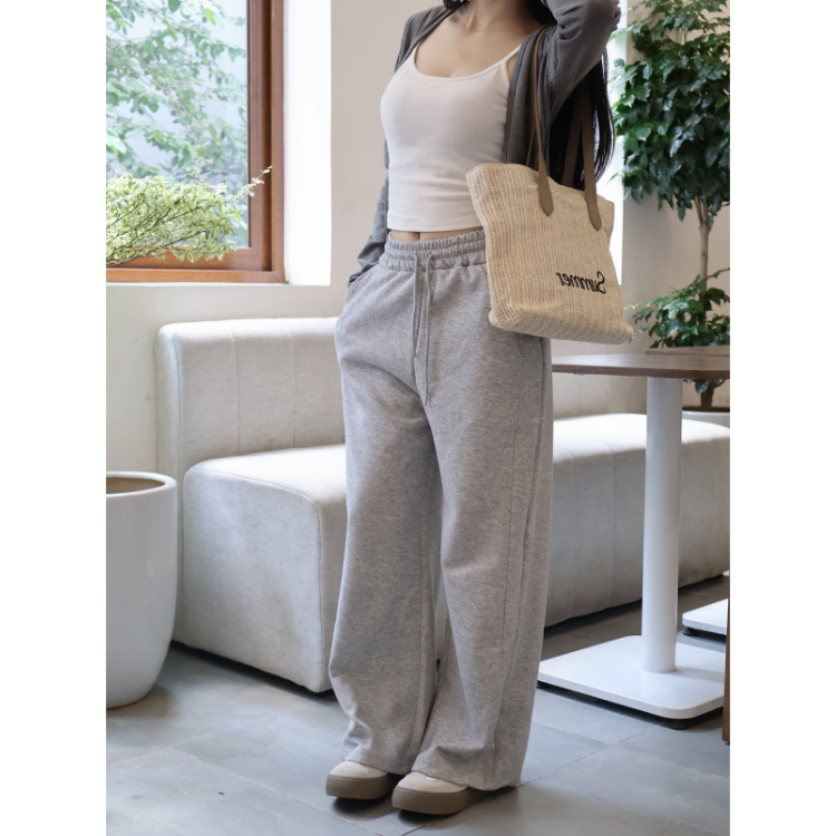 Wide-Leg Fleece Women's Pants with Drawstring Elastic High Waist Highlighted Seam Detail - Straight Best Quality