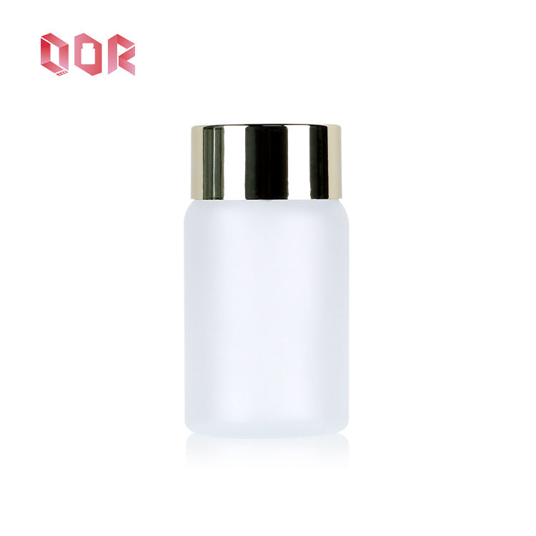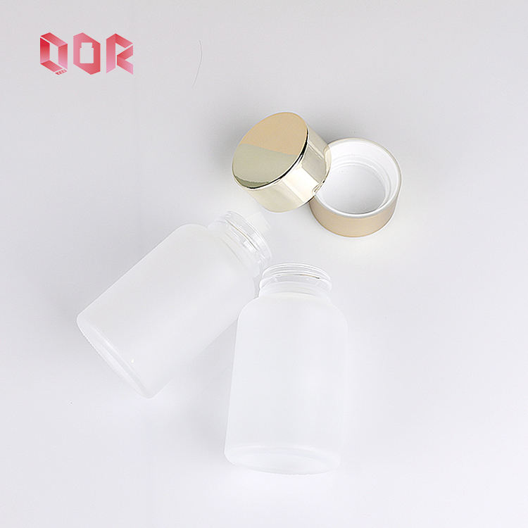 Flacon en verre transparent givré à large ouverture de 120 ml pour emballage de médicaments, comprimés, pilules, avec bouchon doré, flacon en verre pour compléments alimentaires