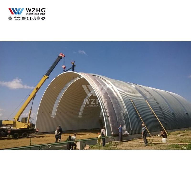 Kit d'entrepôt en arc à grande portée Bâtiment préfabriqué en acier avec conception en arc Aucune colonne interne maximise l'espace de stockage