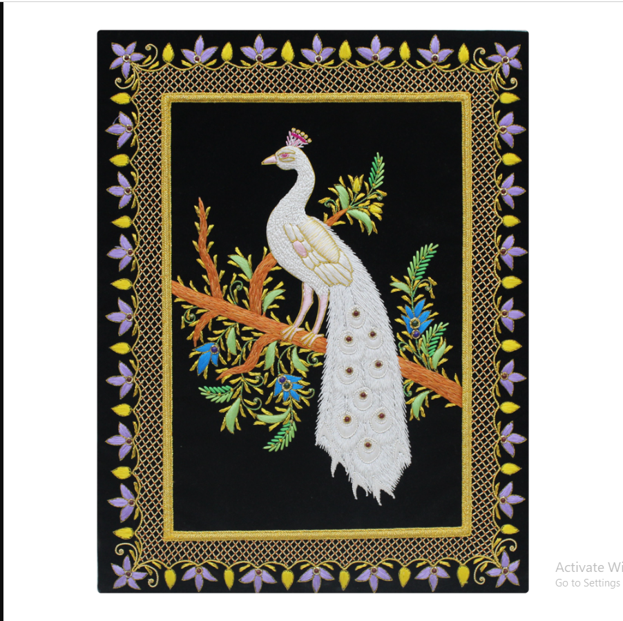 Tapis mural rectangulaire en tissu brodé Zari, auto-adhésif et amovible, fait main, pour la décoration intérieure et les cadeaux