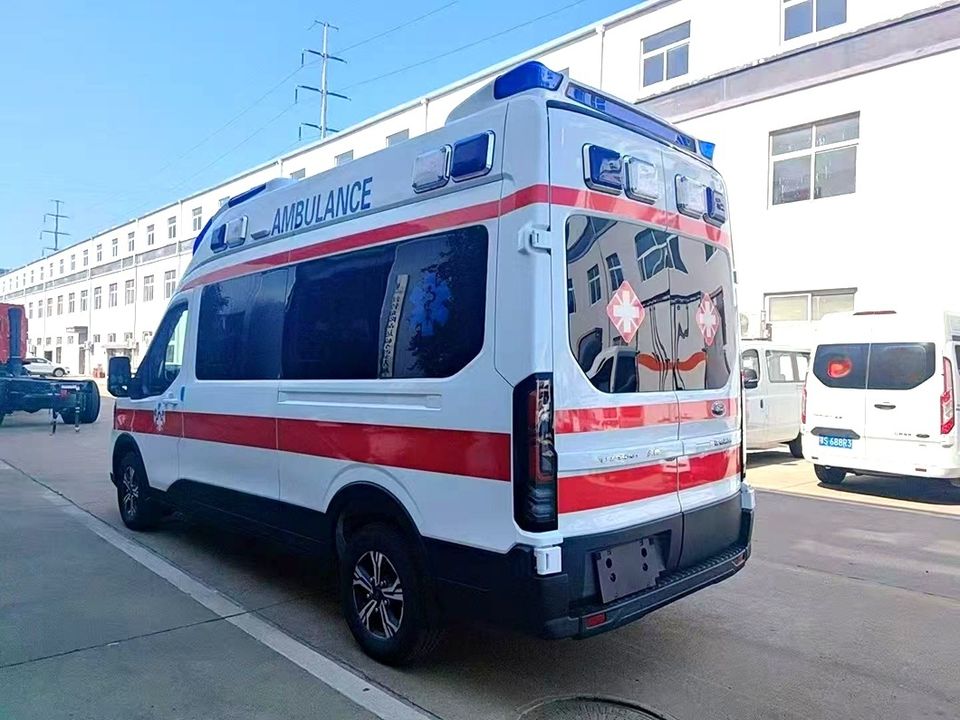 Amplement utilisé dans le secteur médical, véhicule utilitaire d'ambulance F0rd à moteur diesel, conduite à gauche et à droite, pour le transport de malades et de patients.