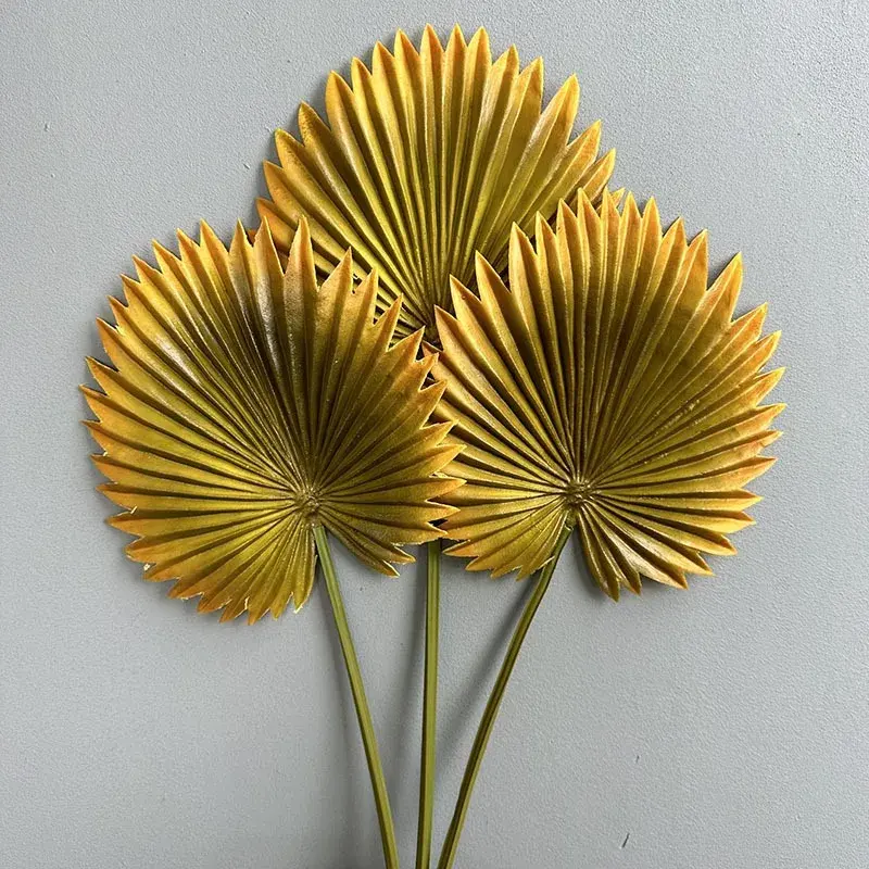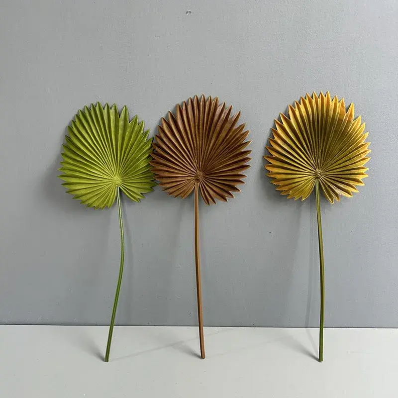 Éventails en feuilles de palmier artificielles pour décoration de mariage, plantes artificielles, feuilles de palmier en plastique souple, 19 cm, vente chaude