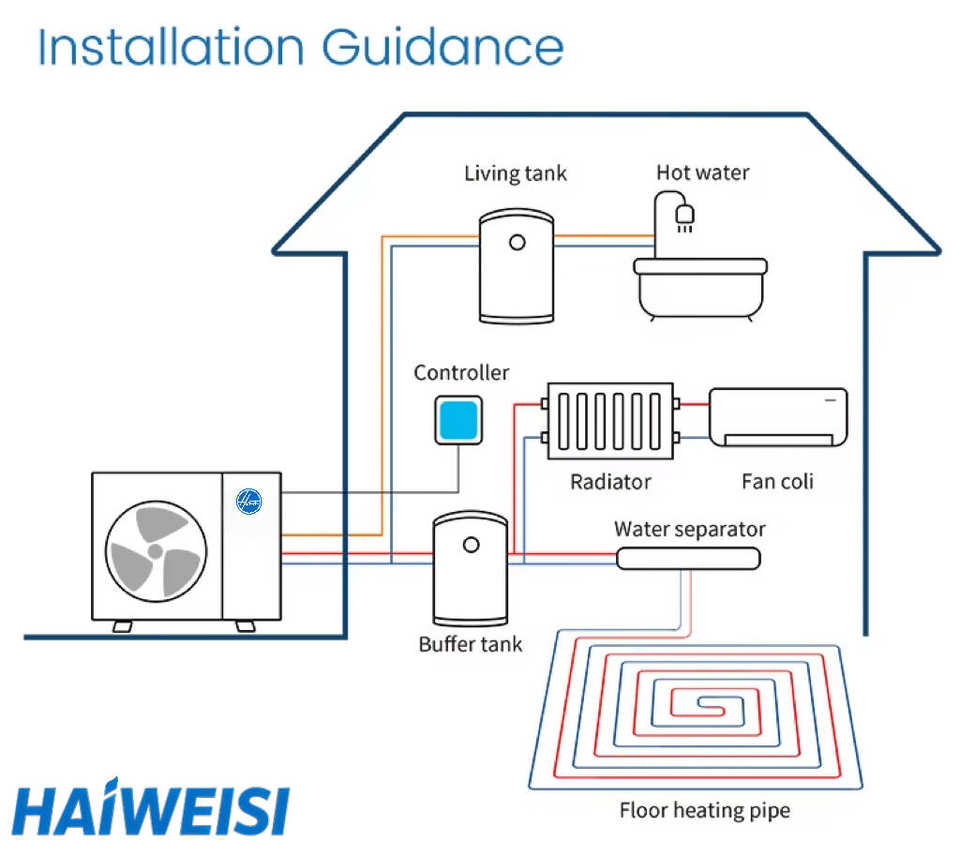 Système de chauffage et de refroidissement centralisé pour maison, pompe à chaleur air-eau monobloc R32 haute performance 10 kW, 12 kW, 15 kW, avec contrôle Wi-Fi