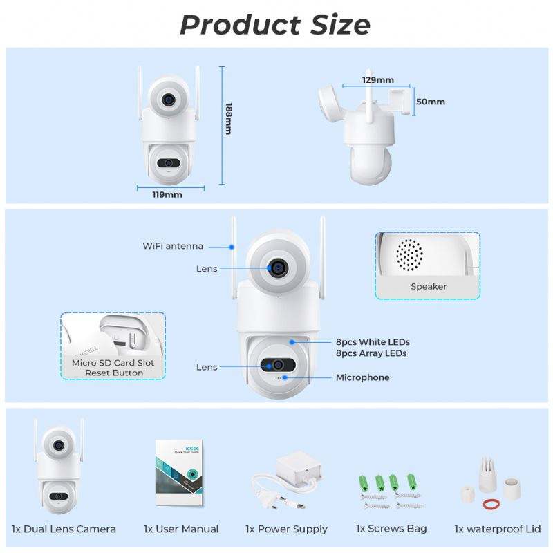Wifi Halow Caméra Audio Espia Panneau Nuage Lumière Cc Yv V 380 Yoose Bande D'égout Caméras Yiwu Solor Judas Tenda 4 Lentille Cacha Check