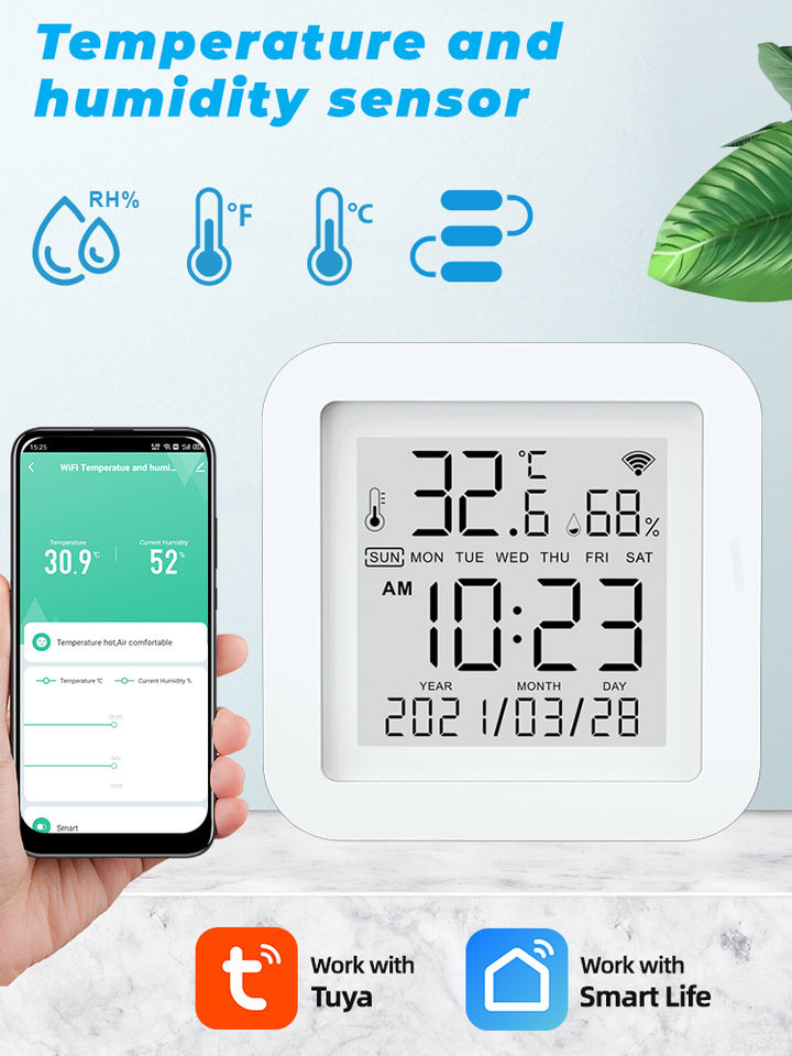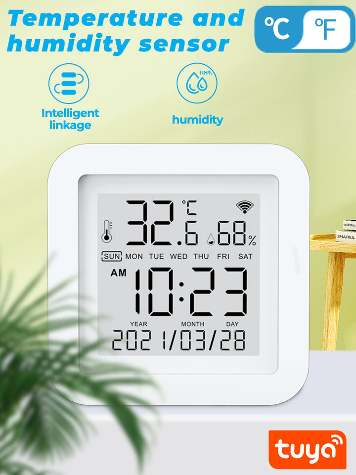 Tuya — capteur intelligent de température et d'humidité, Wifi, hygromètre d'intérieur, thermomètre, alarme, batterie, affichage LCD, pour Alexa Google