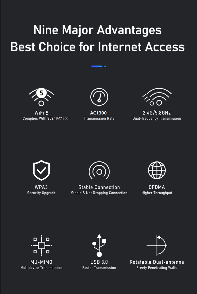 Nom du produit:Adaptateur WiFi 6 USB sans fil