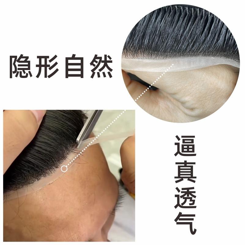 SélectionnerCouleur: Premium model + ultra-thin hairline hand-tied mens wig