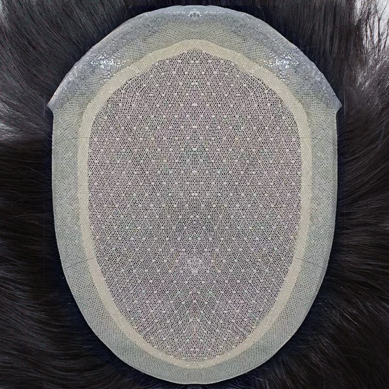 Perruque pour hommes à double aiguille, cheveux naturels, ligne frontale invisible, dessus entièrement tissé à la main, pour la repousse des cheveux chez l'homme atteint de calvitie méditerranéenne