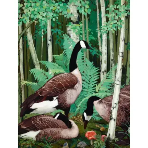 Oies sauvages Mural carreaux de céramique dosseret de style Art déco fabriqués à la main en bois de bouleau