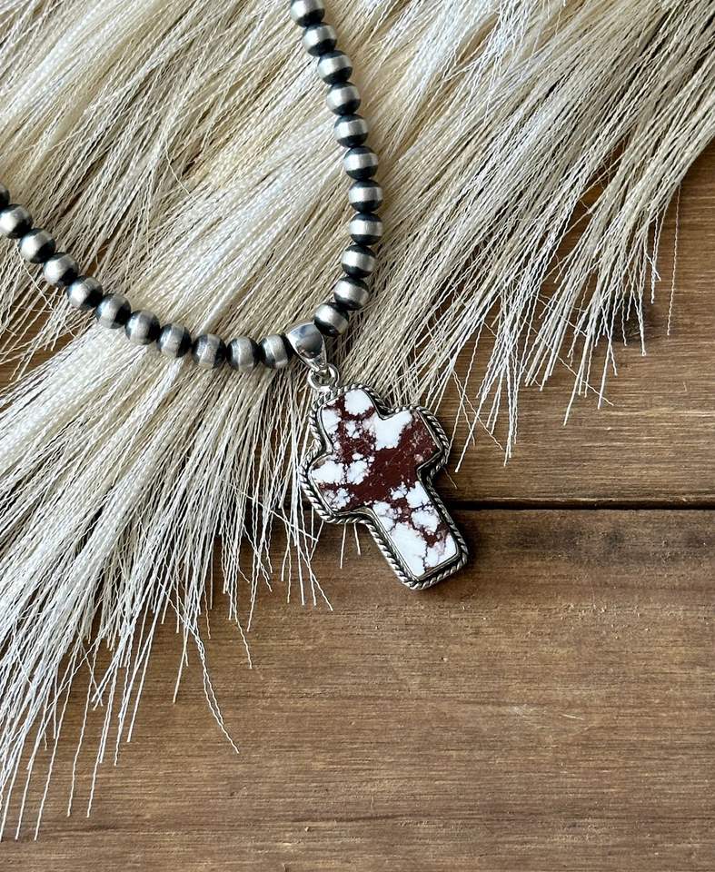 Wild Horse Gemstone and Sterling Silver Western Cross Pendant
