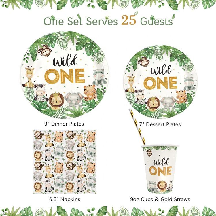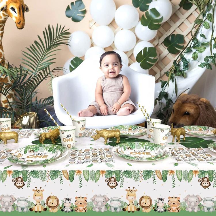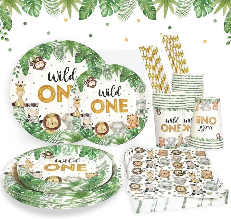 Sauvage One anniversaire décorations assiettes Set Safari Jungle assiettes à thème tasses serviettes pailles ensembles garçons première fête fournitures