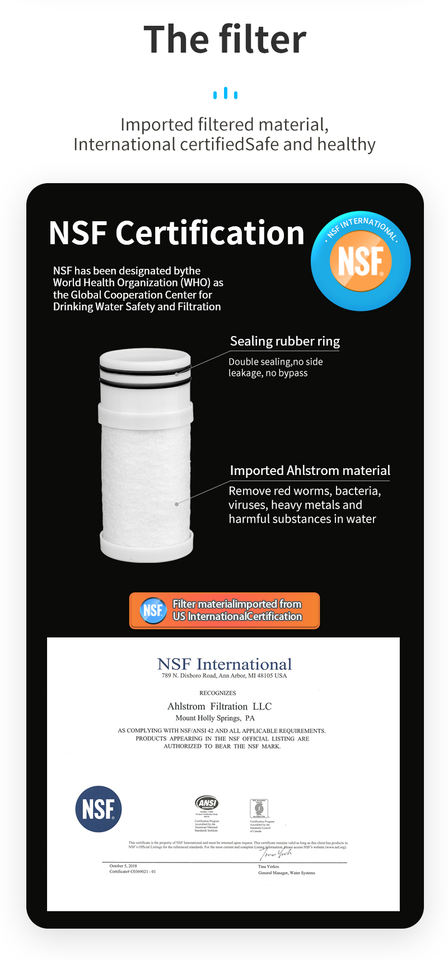 Principe de filtration:Ahlstorm (importé des États-Unis avec approbation NSF)