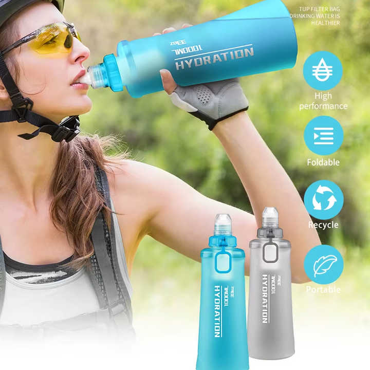 Sac à dos d'hydratation pour survie en milieu sauvage, bouteille filtrante souple en TPU sans BPA, 500 ml, 1000 ml, gourde souple pliable avec paille