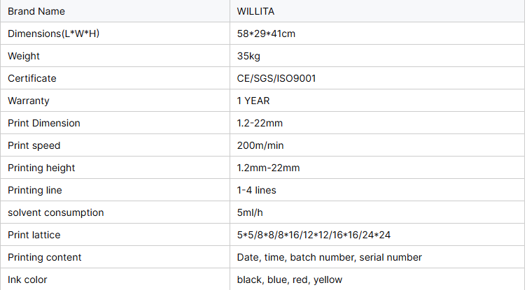 Imprimante à jet d'encre continue Willita Cij pour machines d'impression à jet d'encre pour boîtes cosmétiques Machine de codage automatique par lots pour bouteilles PET